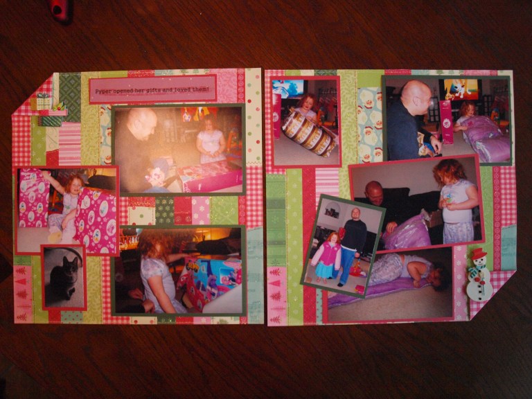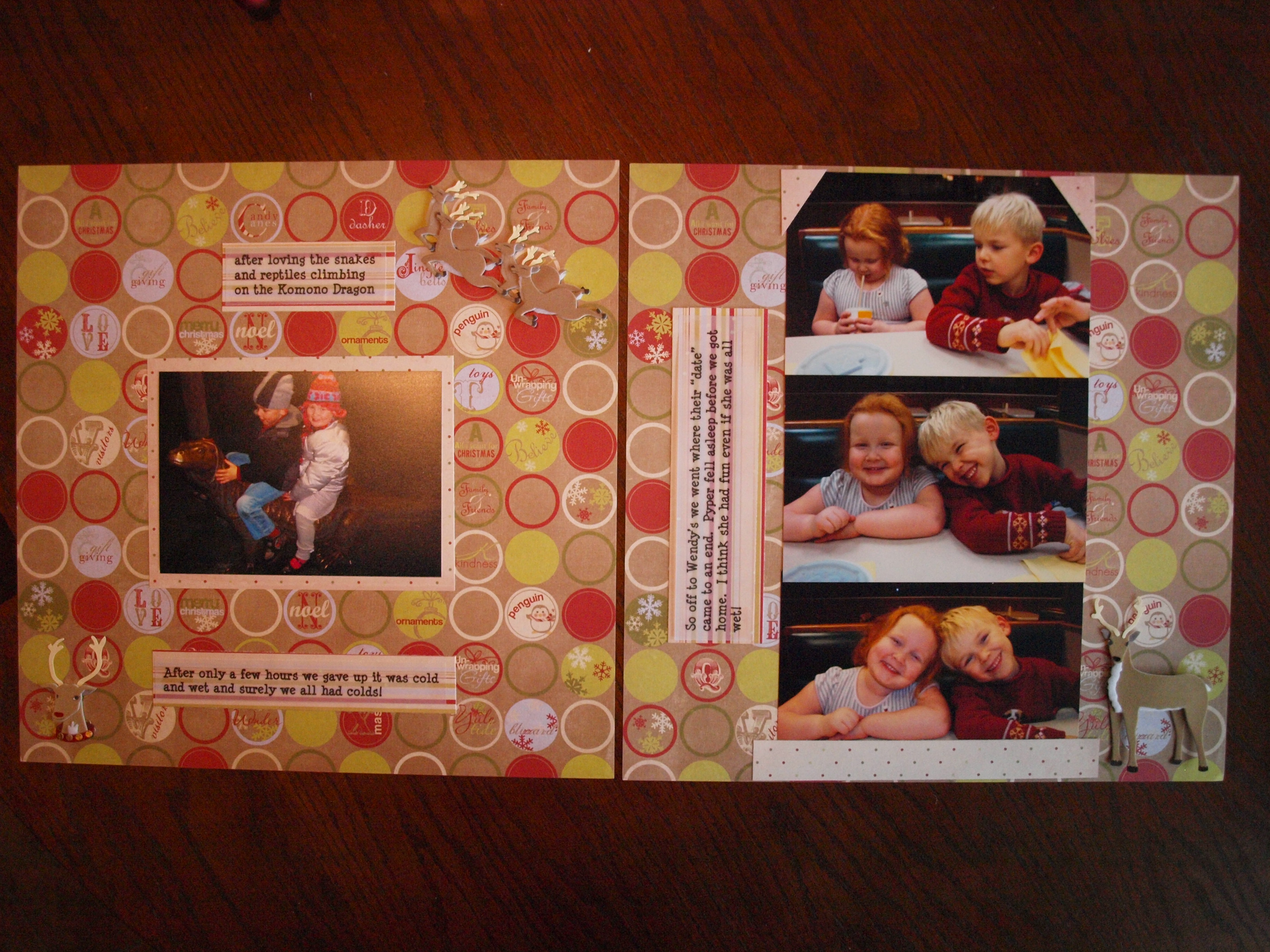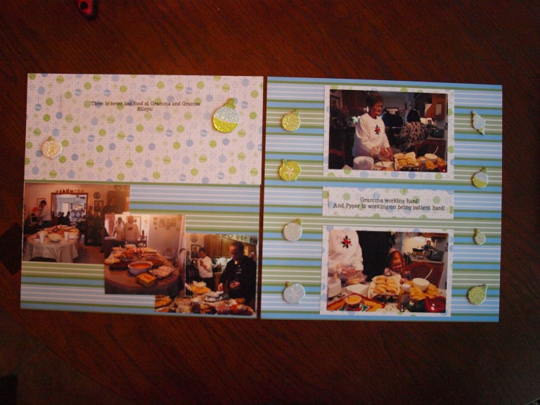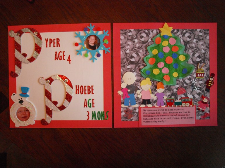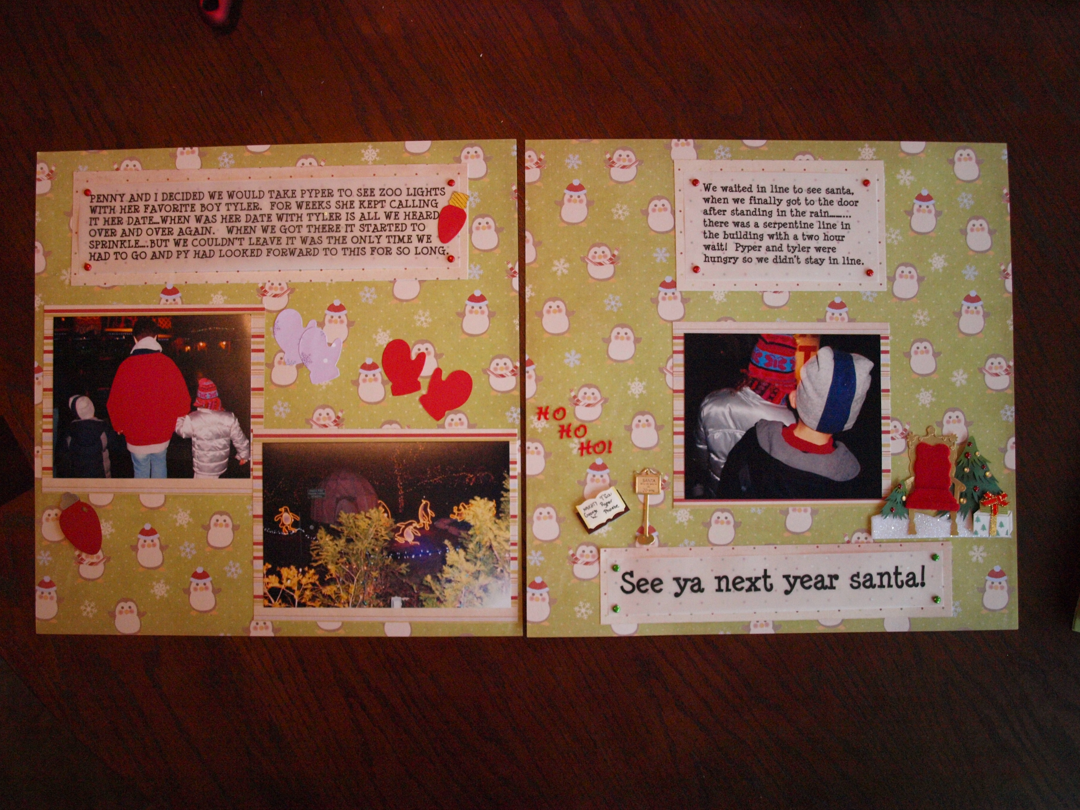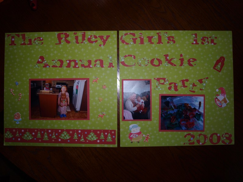 My Christmas scrapbooks are never small! We have such fun and we do so much! We have started to have a cookie party each year this year it’s December 12th and I can’t wait. The following are just a few pages from each event I hope you get inspired!!! I love looking at other websites and getting in the mood to scrap I feel so behind now that the girls have more and more of a social life I can’t let a thing pass by. It is an obsession I know this the first step is admitting it….LOL