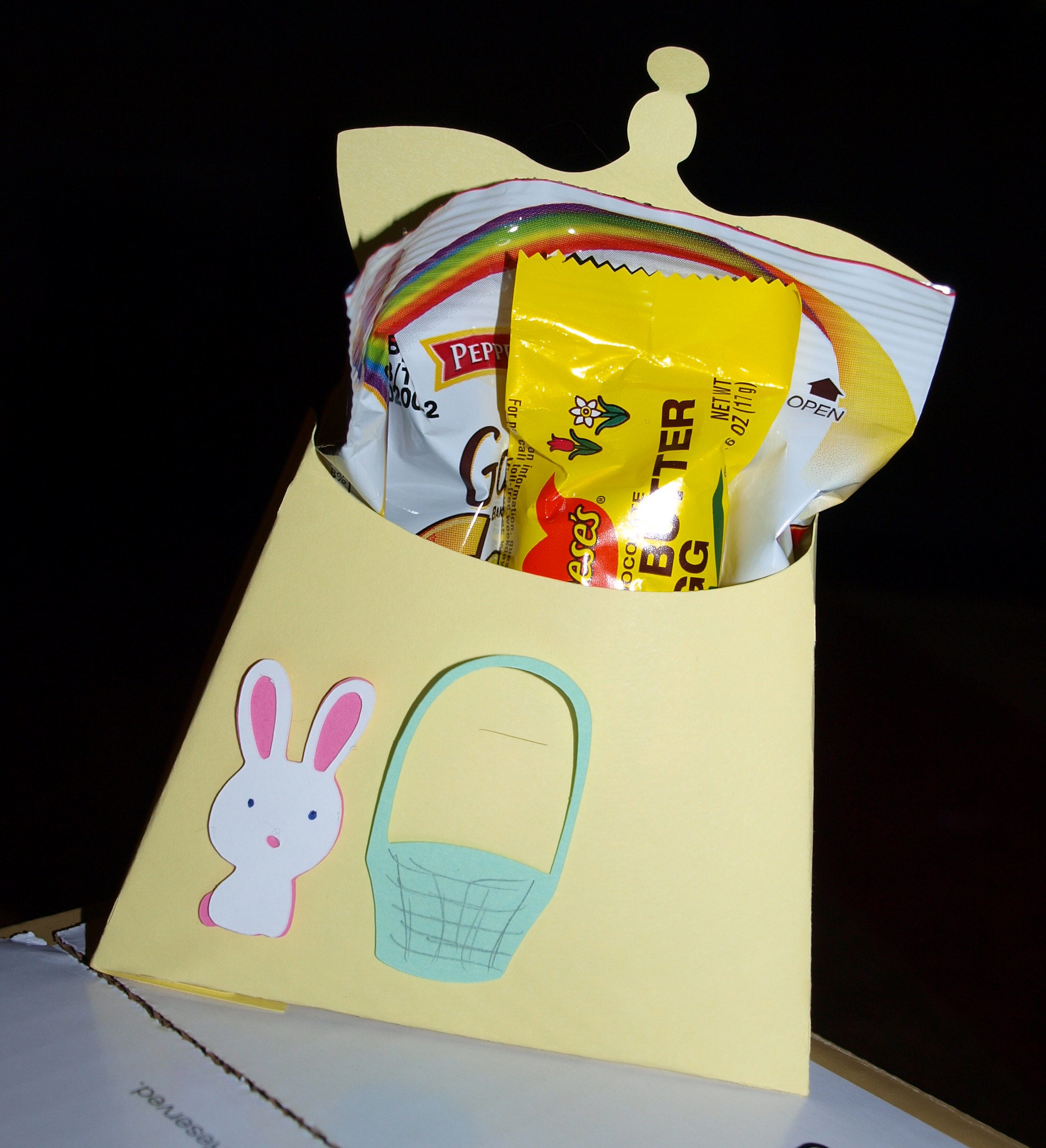 I added the bunny and basket after folding together the boxes put in the treats and wallah not so lame after all!