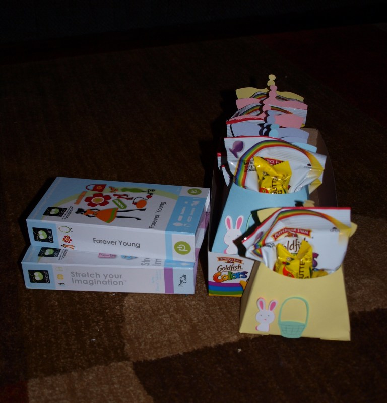 I loved the way they turned out I used all different spring colored cardstock, two of the Cricket cartridges: Forever Young and Stretch Your Imagination.
