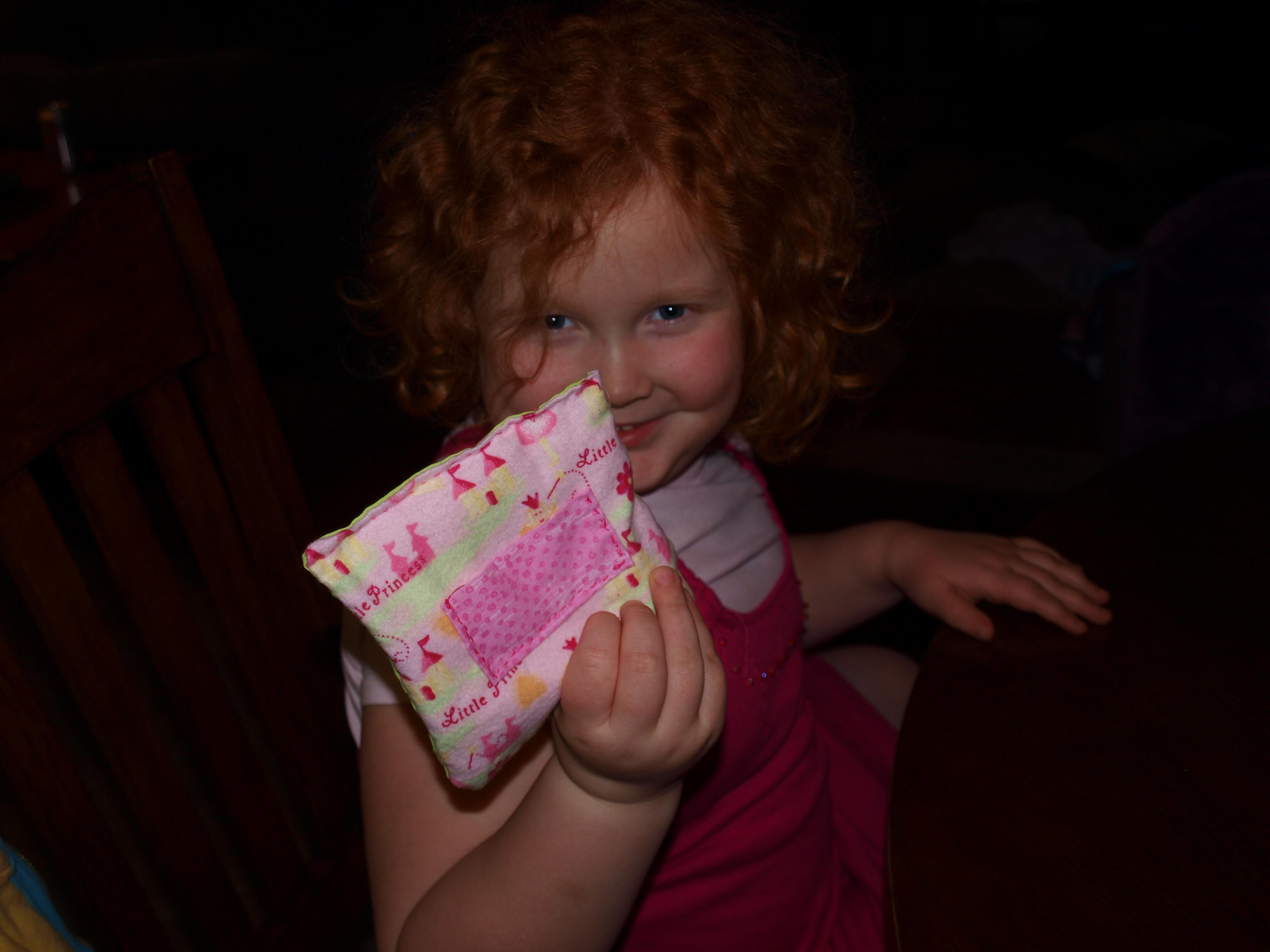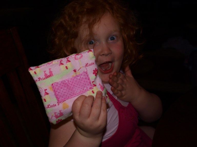 I grabbed the sewing kit and let her pick the pattern surprise it was princess, I had these squares cut for a quilt that never got made so why not!