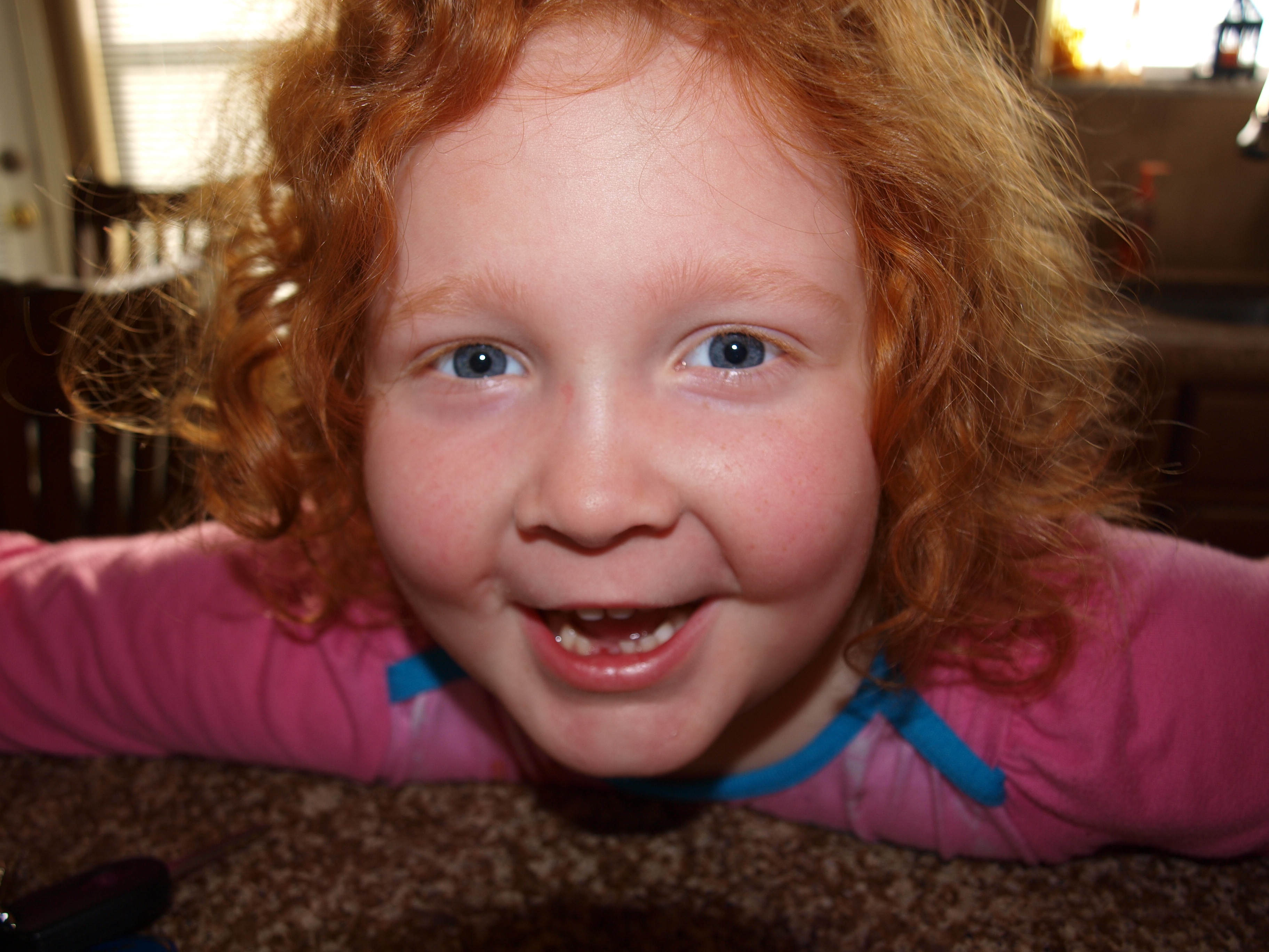 At Pyper last dentist appointment her dentist told her that her two bottom teeth were loose. She was so excited she came home and told everyone who would listen. Only when we touched them they didn’t seem loose at all! So she worked them for a little over two months. This past week she kept asking “is it time Mom; is it loose enough to pull Dad?” It seemed a little tight yet so we told her to be patient it will come out. Well low and behold we were at a restaurant for breakfast when all of a sudden she is handing me her tooth! She yelled “MOM MY TOOTH” she was so happy and so excited! Even as I was cleaning up the scrambled eggs she spit out on me she could not stop smiling.