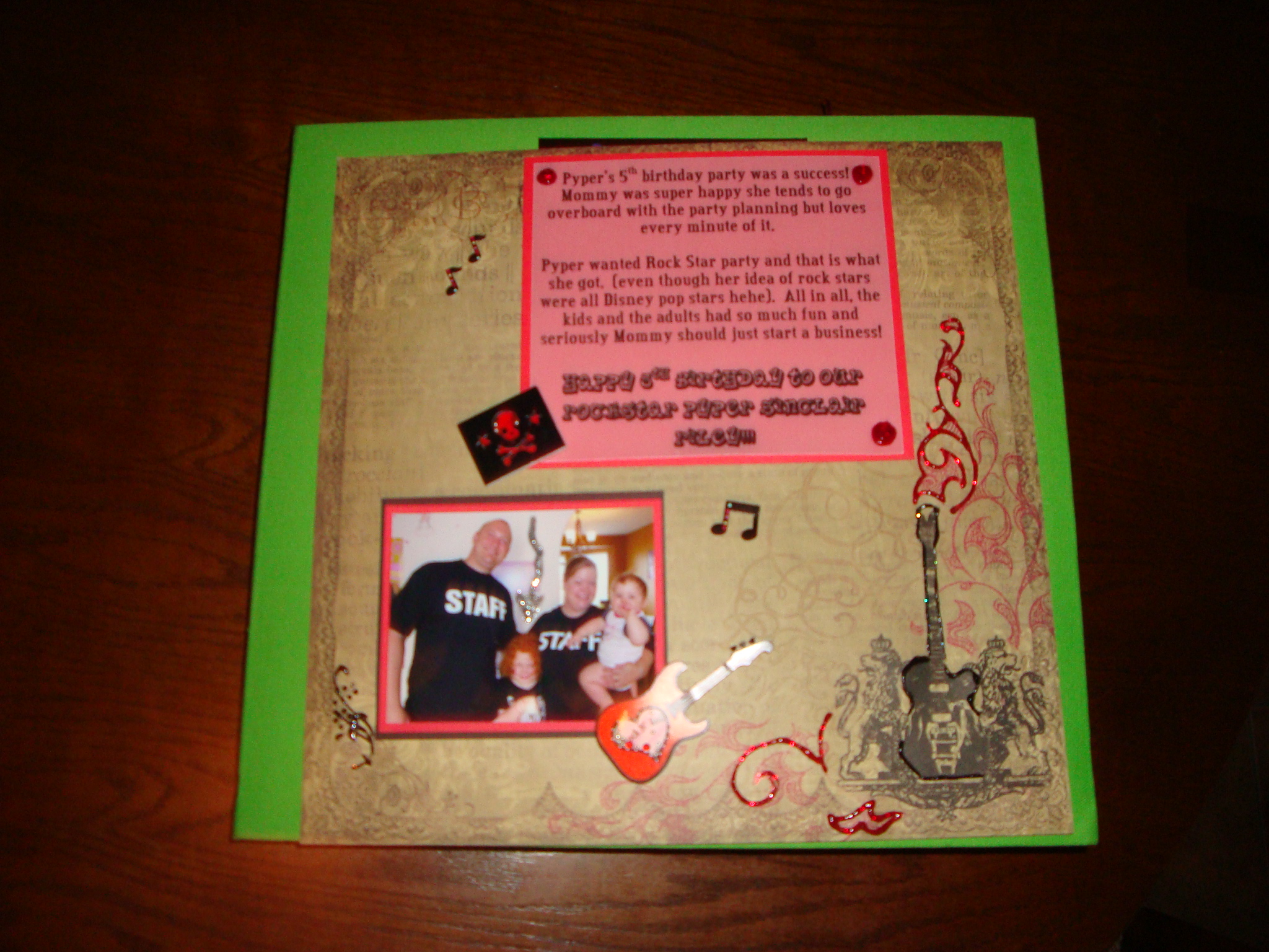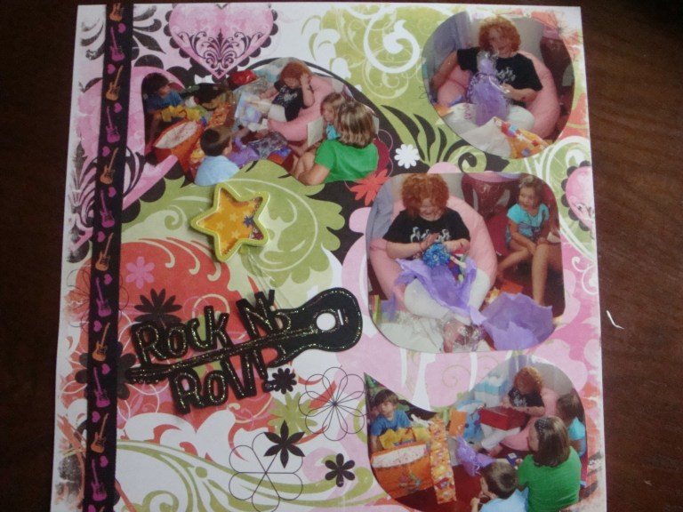 Yes it took a year to get it done….not really only a little over a week but a year later here are some of the pages from Pyper’s 5th Rock Star B-day party last summer.