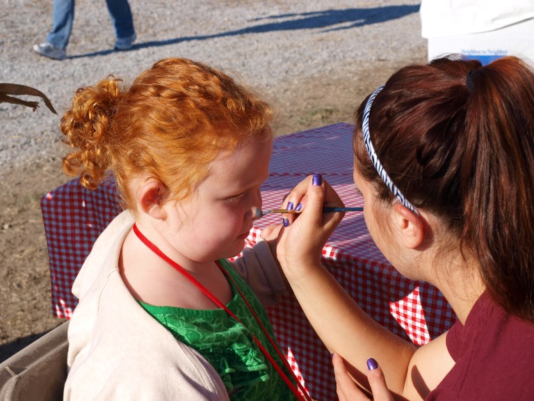 Phoebe wasn’t to interested in getting her face painted she is only two so she was just happy not to be stuck in the stroller the whole time!  The grounds were perfect we didn’t have to worry about her getting trampled or run over by random four wheelers like some other festivals we’ve been to.   I kid not when I say family friendly!