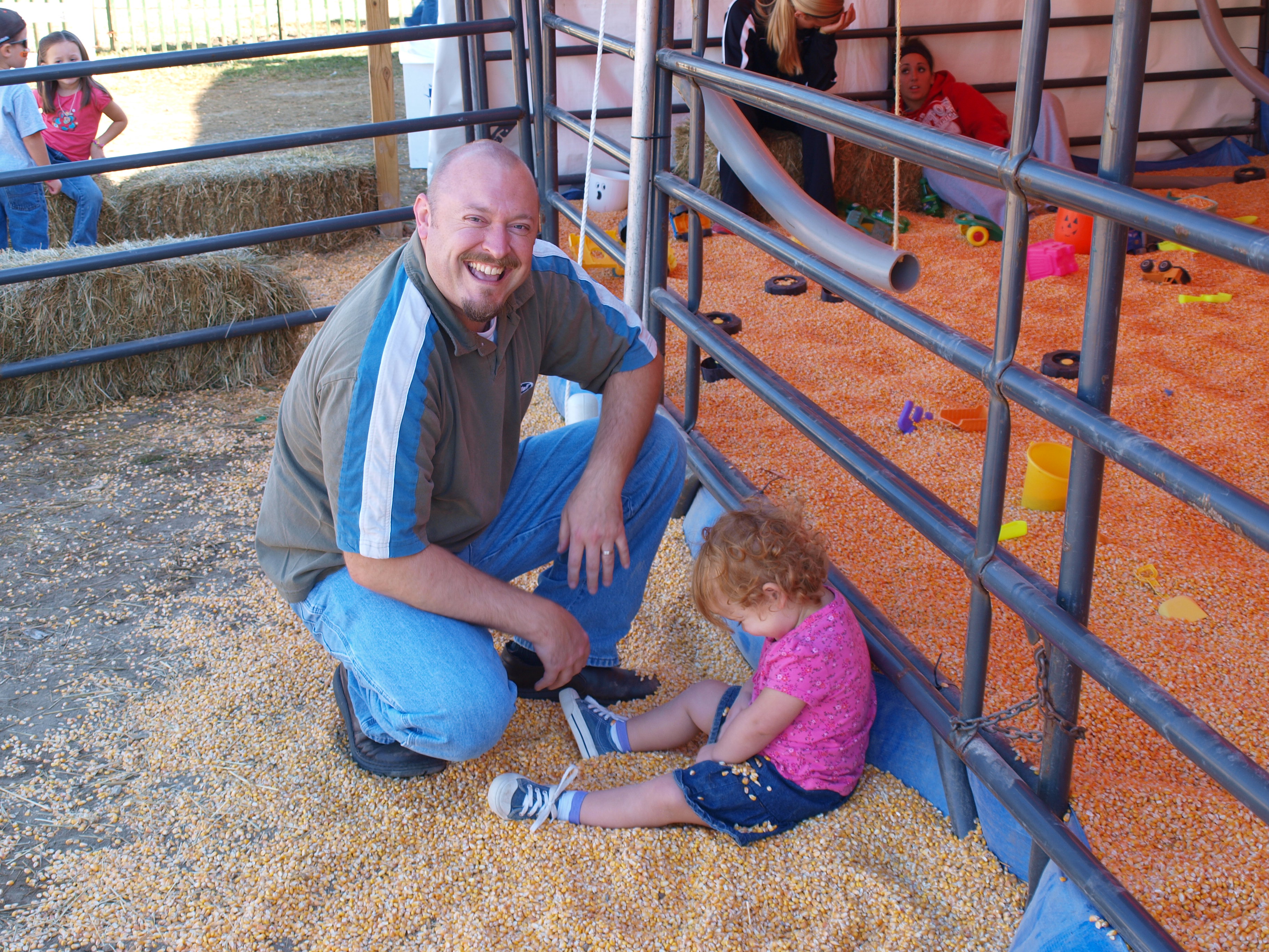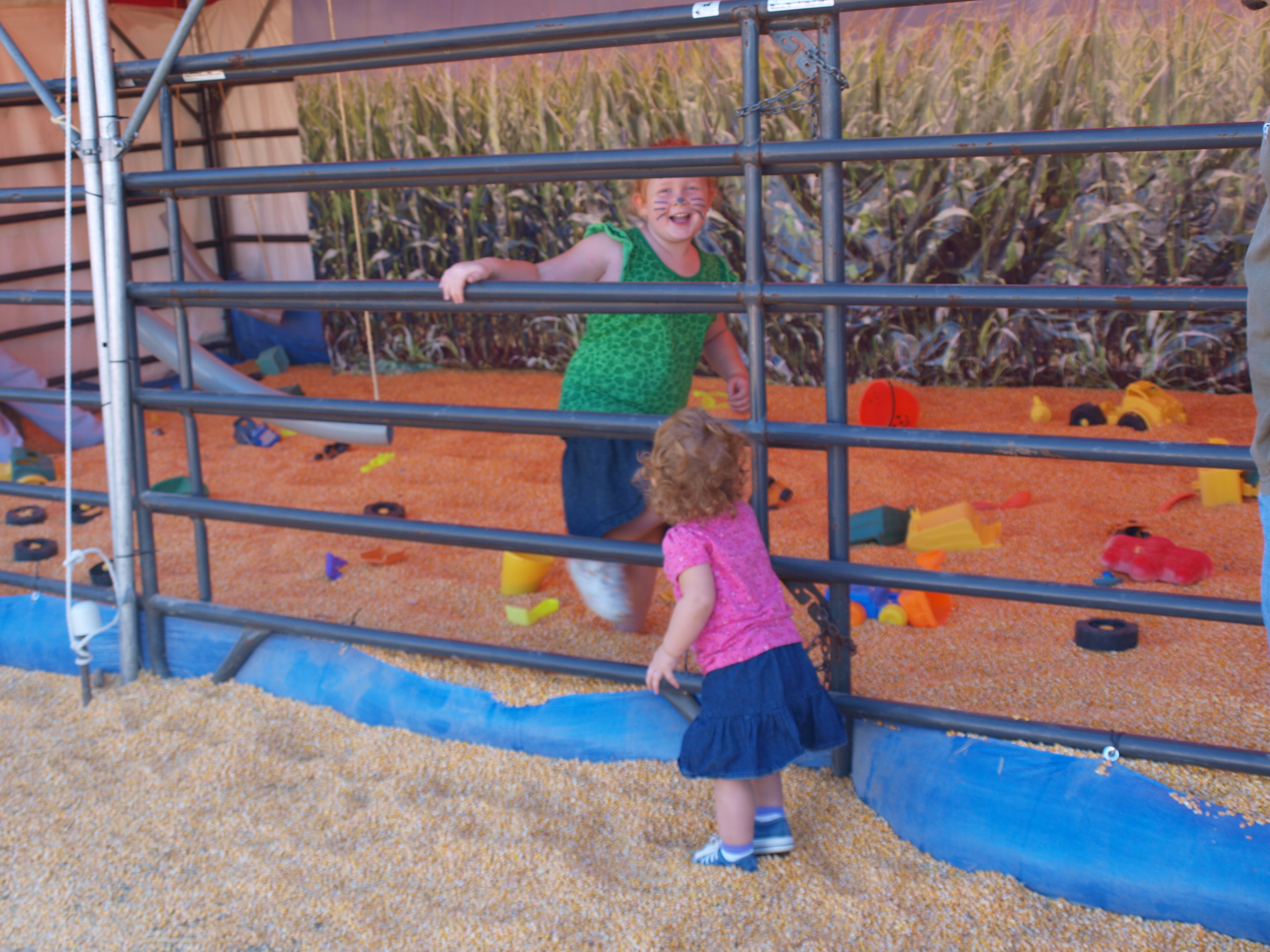 Once we got the Peas away from this fun filled corn pile we ate lunch at the food tent and it was so good all us girls ate chicken sandwiches, fries and cole slaw and Chad had the brat, fries and baked beans …… everything was so good, so good in fact that Py stole Daddy’s beans!
