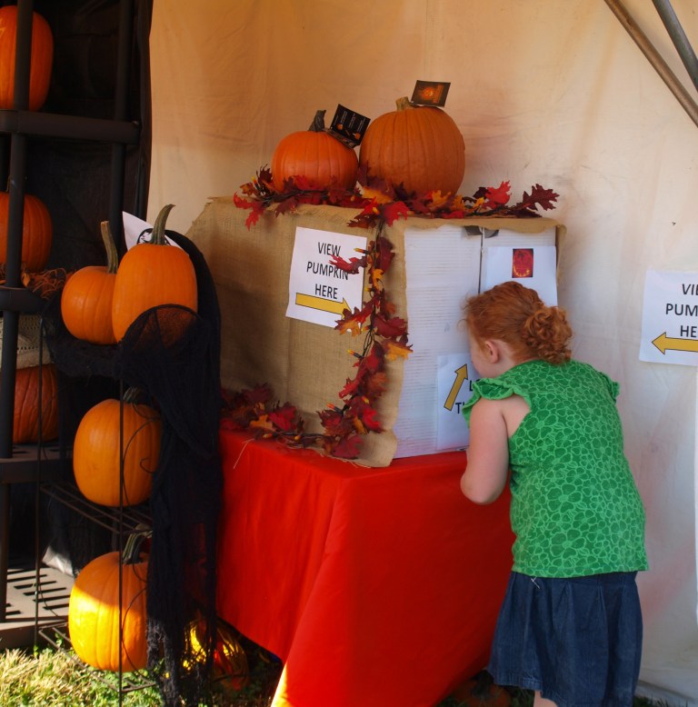 This is where we met Michael Conner and his lovely assistant for the day his Mom which was perfect for such a family friendly place.   Dad of 2 Peas was able to get a lot of tips from this X-Treme Carver after all he has been doing this for 7 years and loves it.  My husband has been carving fun pumpkins for the peas and can’t wait to try something new.  A tip he gave me was to sprinkle the inside with cinnamon so it smells like pie when lit and to coat the outside with vaseline so it last a little longer!