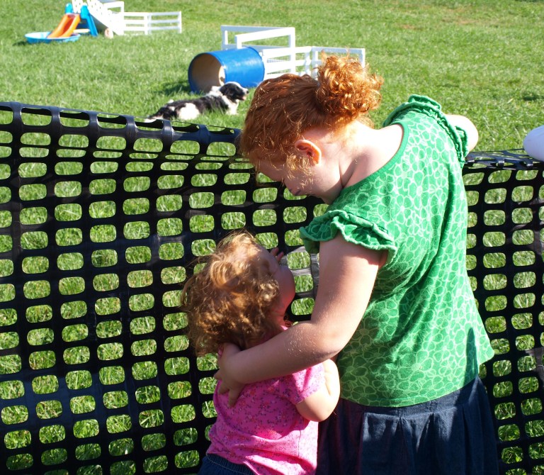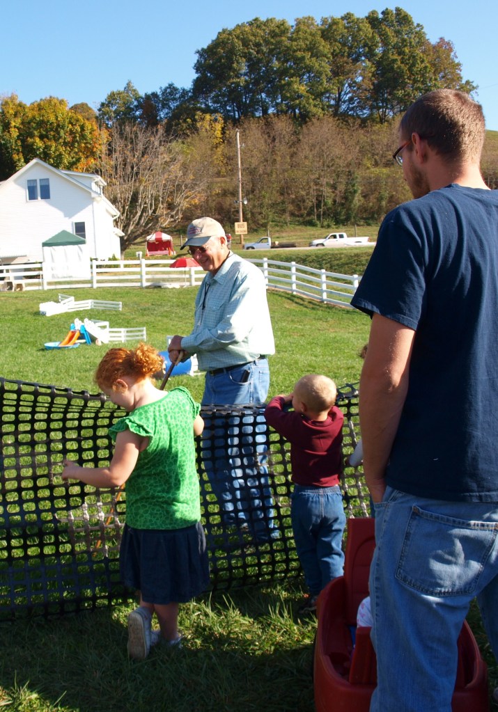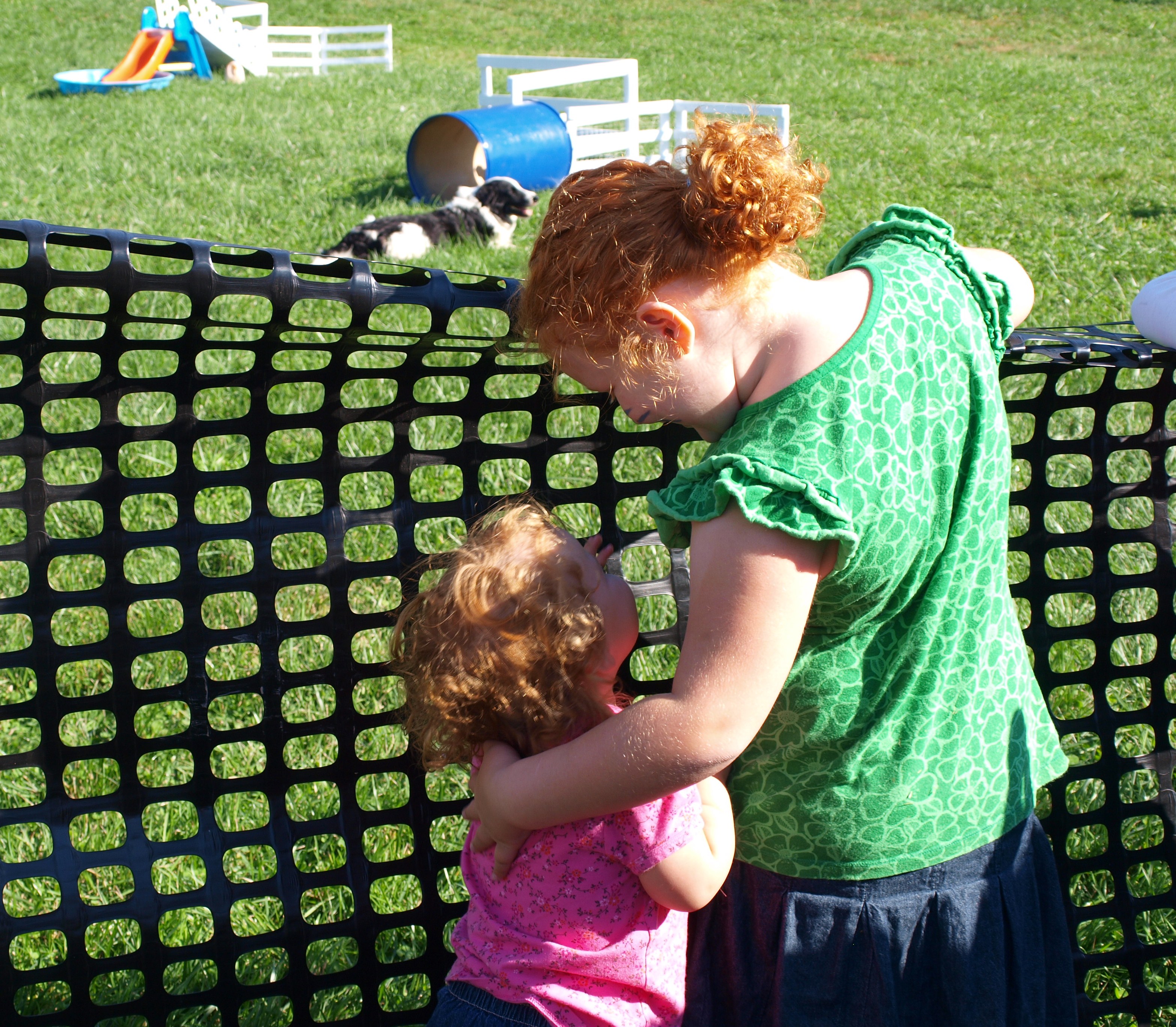 The dogs were amazing they herd the sheep, jump over the sheep, herd the ducks and did everything Mr. Jenkins asked them to do.   Then Mr. Jenkins saw a little cat and couldn’t resist talking to her….Py got a little shy and Phoebe ran to Daddy to discuss sheep.