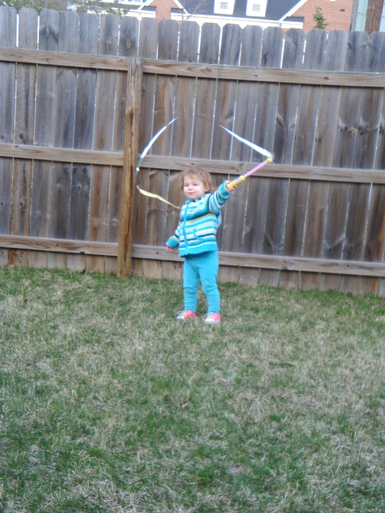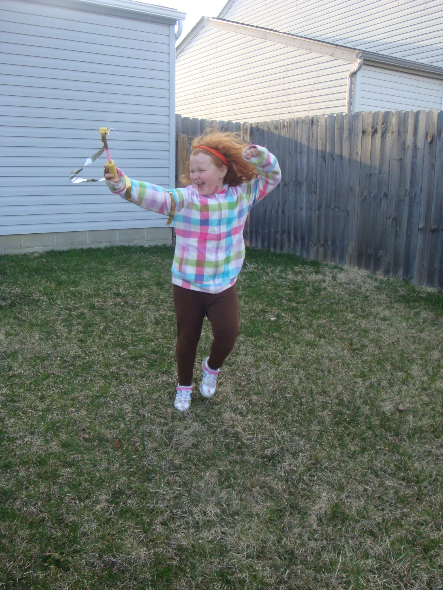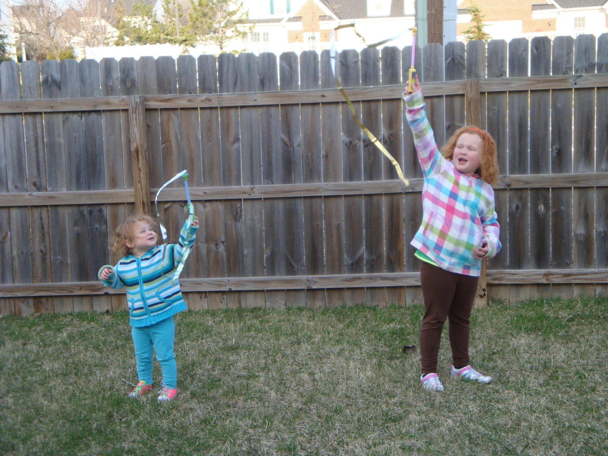Yea! The girls got these ribbons from Santa and waited all winter to break them out they jumped, ran and spun all over……….