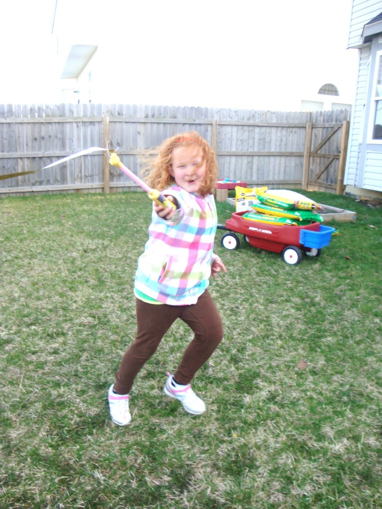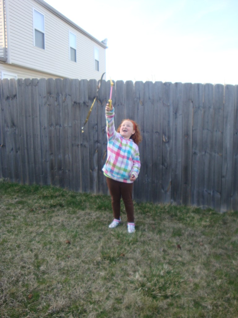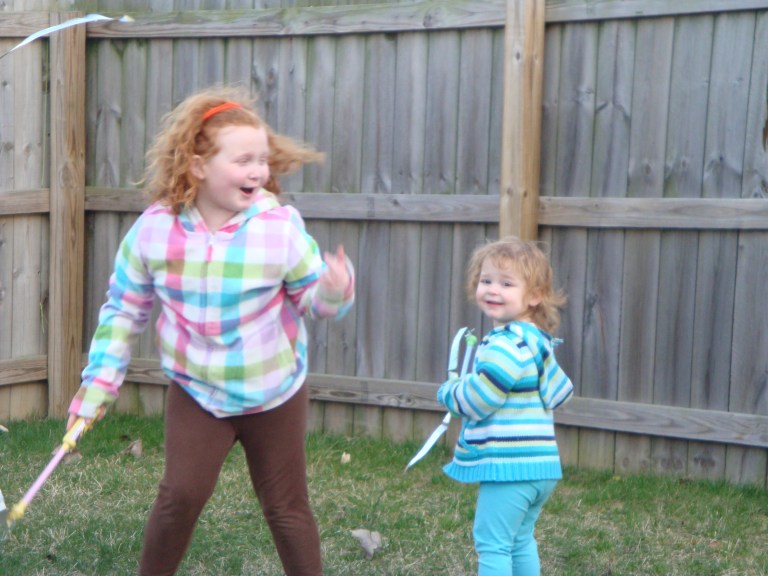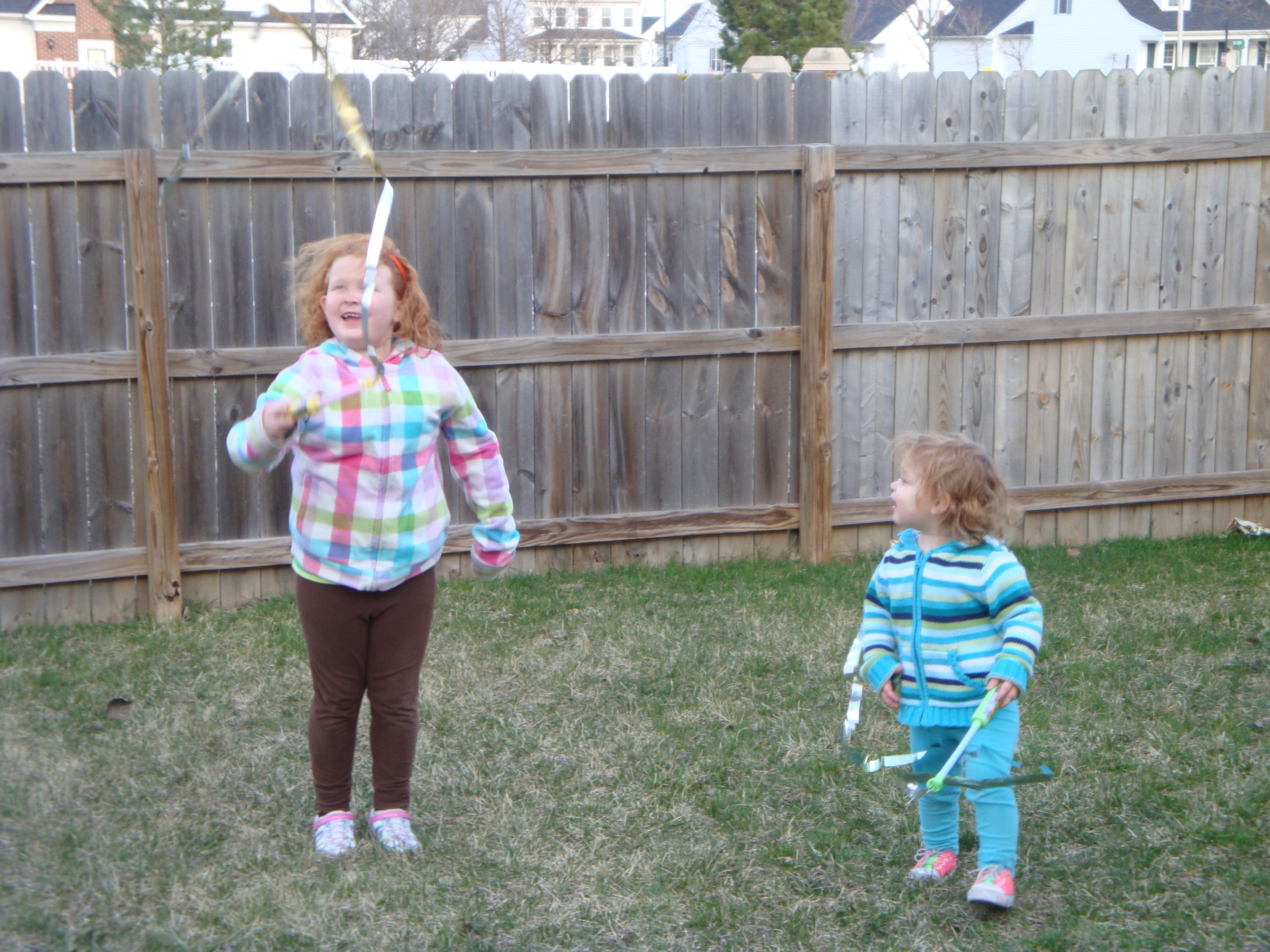 Yea! The girls got these ribbons from Santa and waited all winter to break them out they jumped, ran and spun all over……….