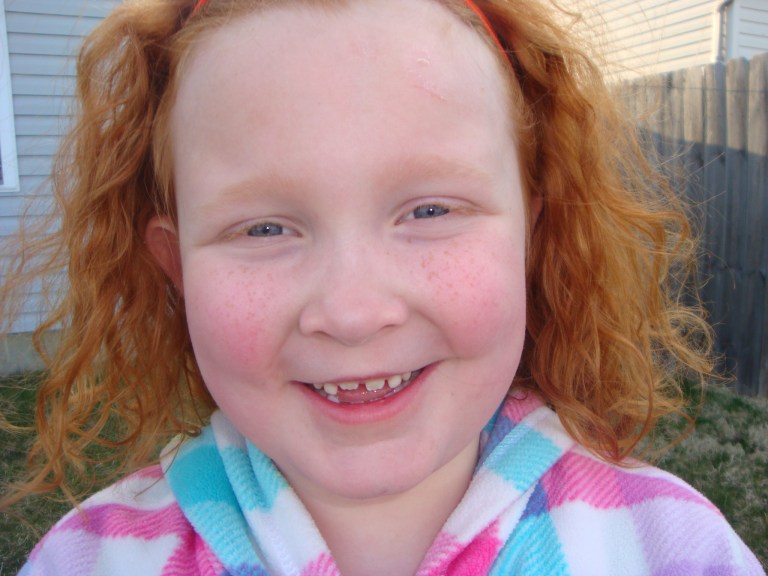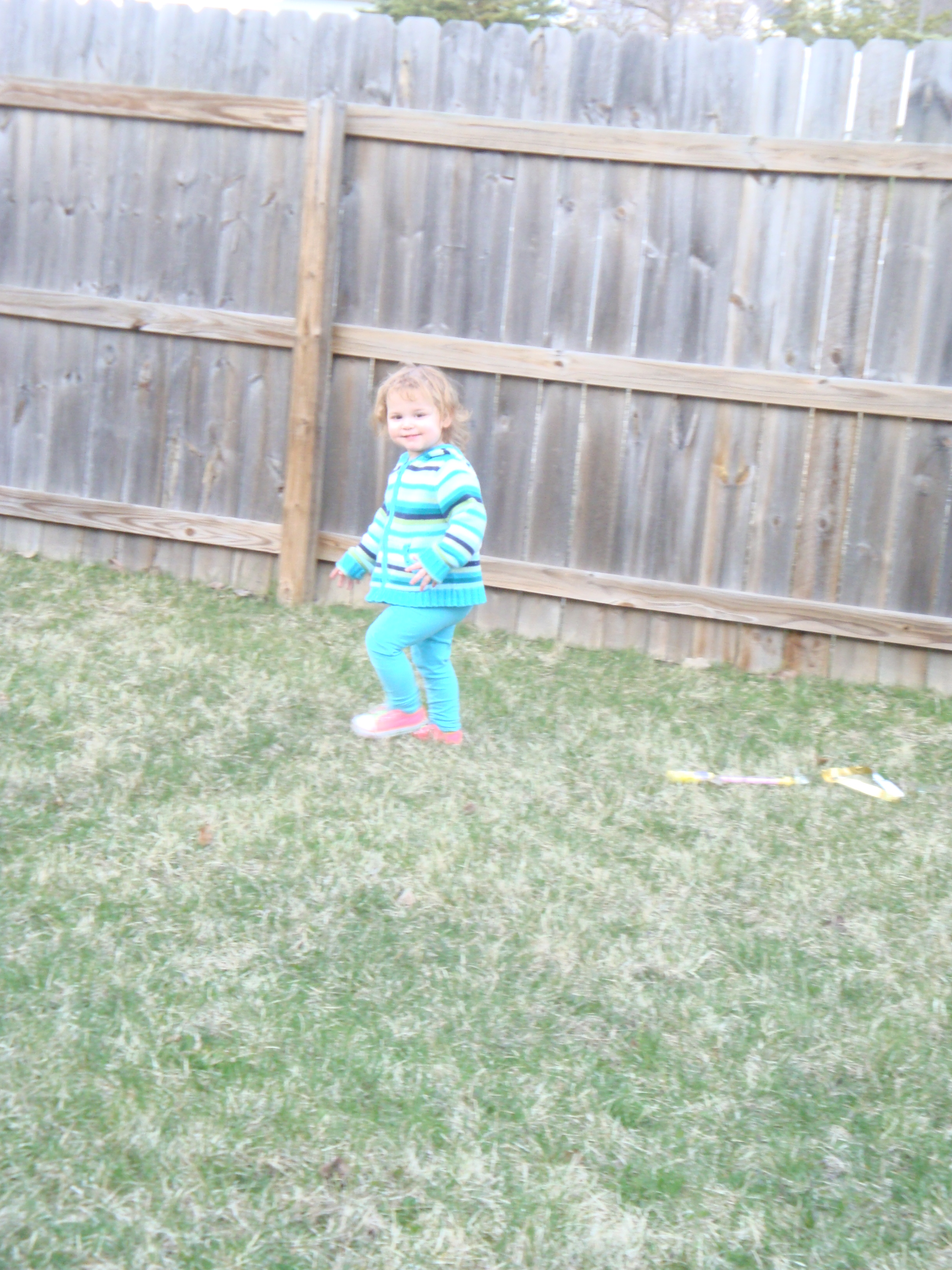 It seemed like the sky opened up and all the Peas joy came falling down …. in the back yard ~ this is the face I got when I told her she could play in the back yard she was kind of tired of the front already how could that be???