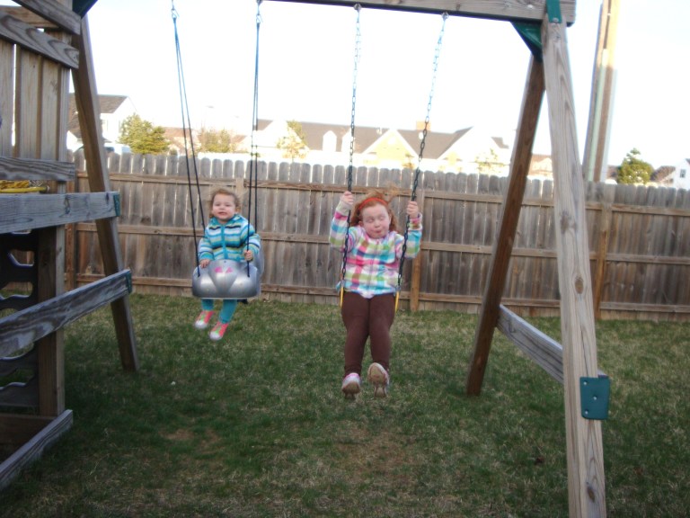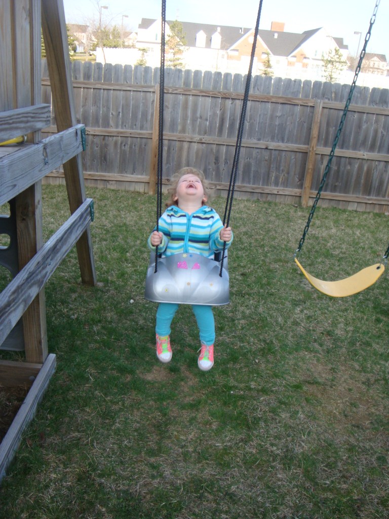 Then the swings these girls LOVE the swings I got tons of cute pictures but this one was hysterical! Mid-flight funky faces!