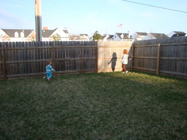 So when the nicer days came around Py and Phoebe finally got to ride their bikes and take walks around the block but not the back yard it was still too muddy….until