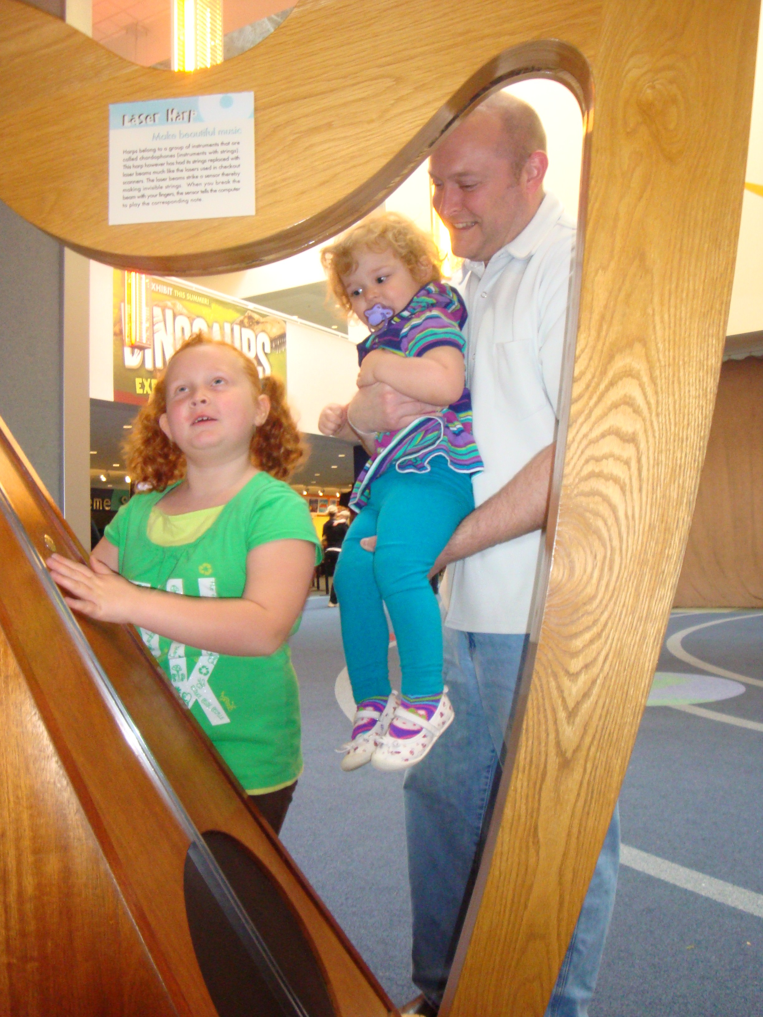 When you first walk in you are immediately greeted with “cool stuff” as the oldest pea would put it. A harp without strings but plays when you touch it because of lasers!
