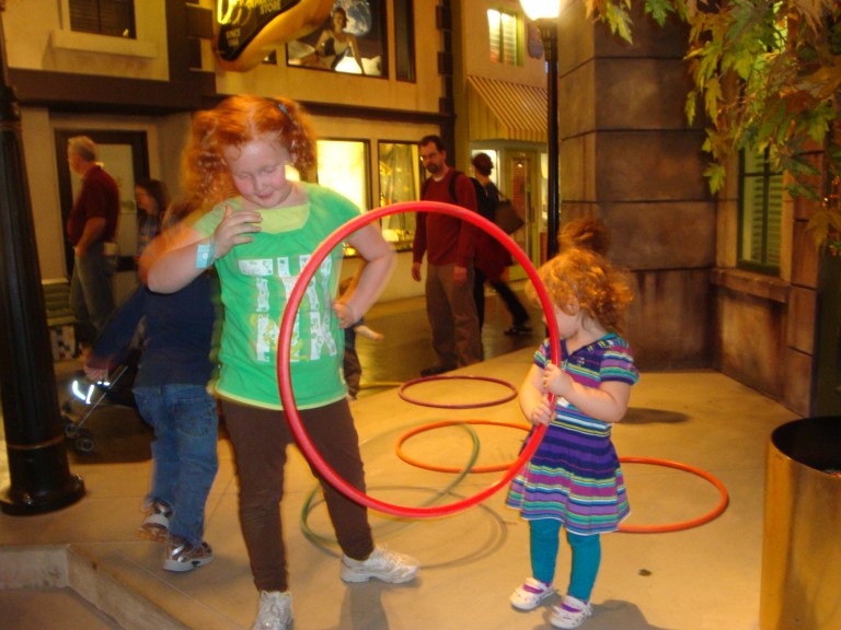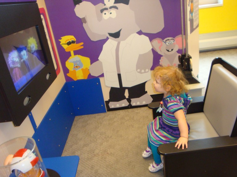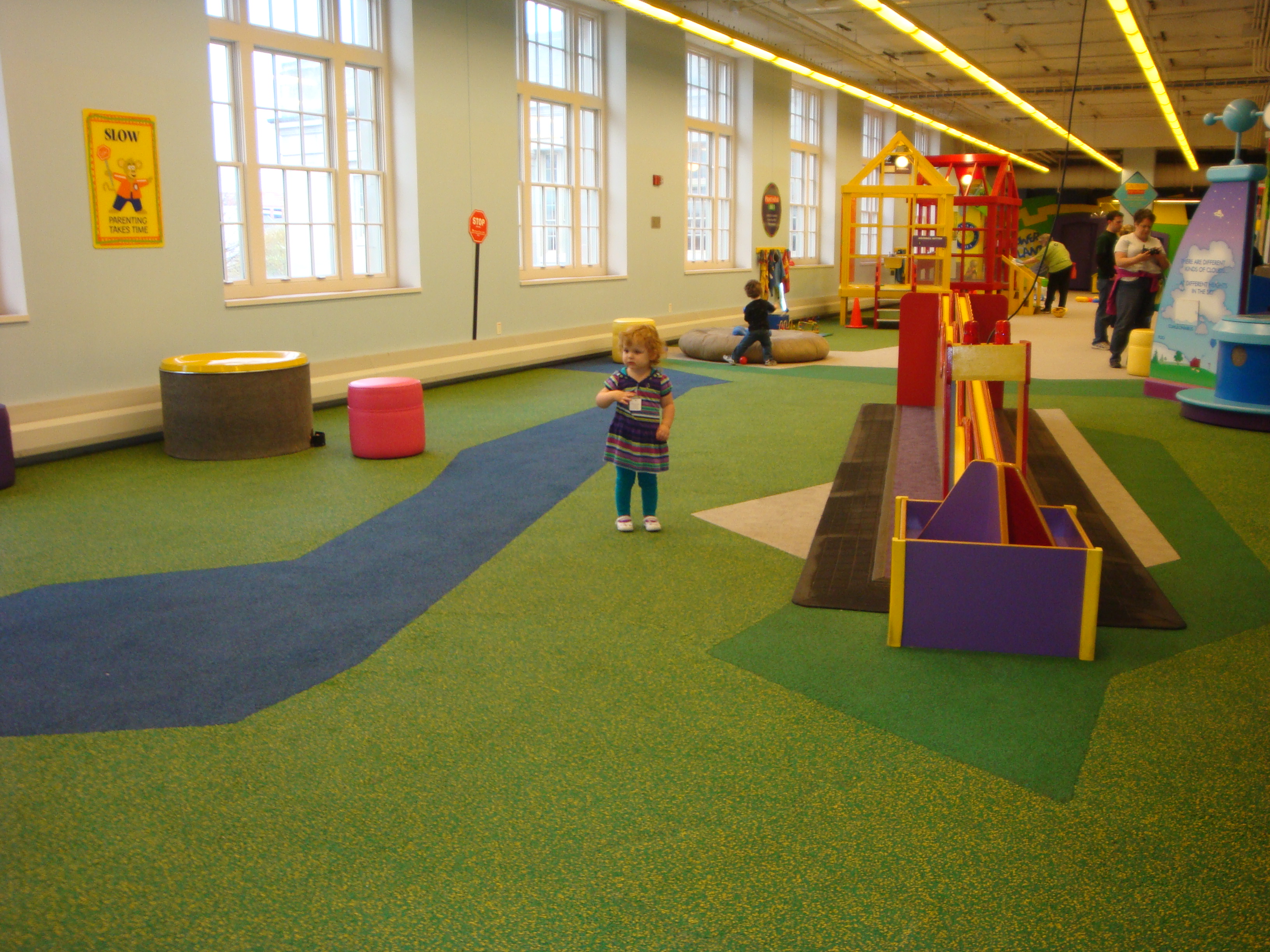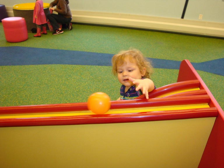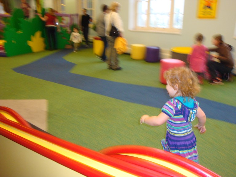 The first time we went to Cosi with my in laws I took the oldest Peas thinking that the littlest pea would be stuck in a stroller and miserable all day so she stayed home with Daddy…….. little did I know they practically have a whole floor just for those little people 5 years and under!