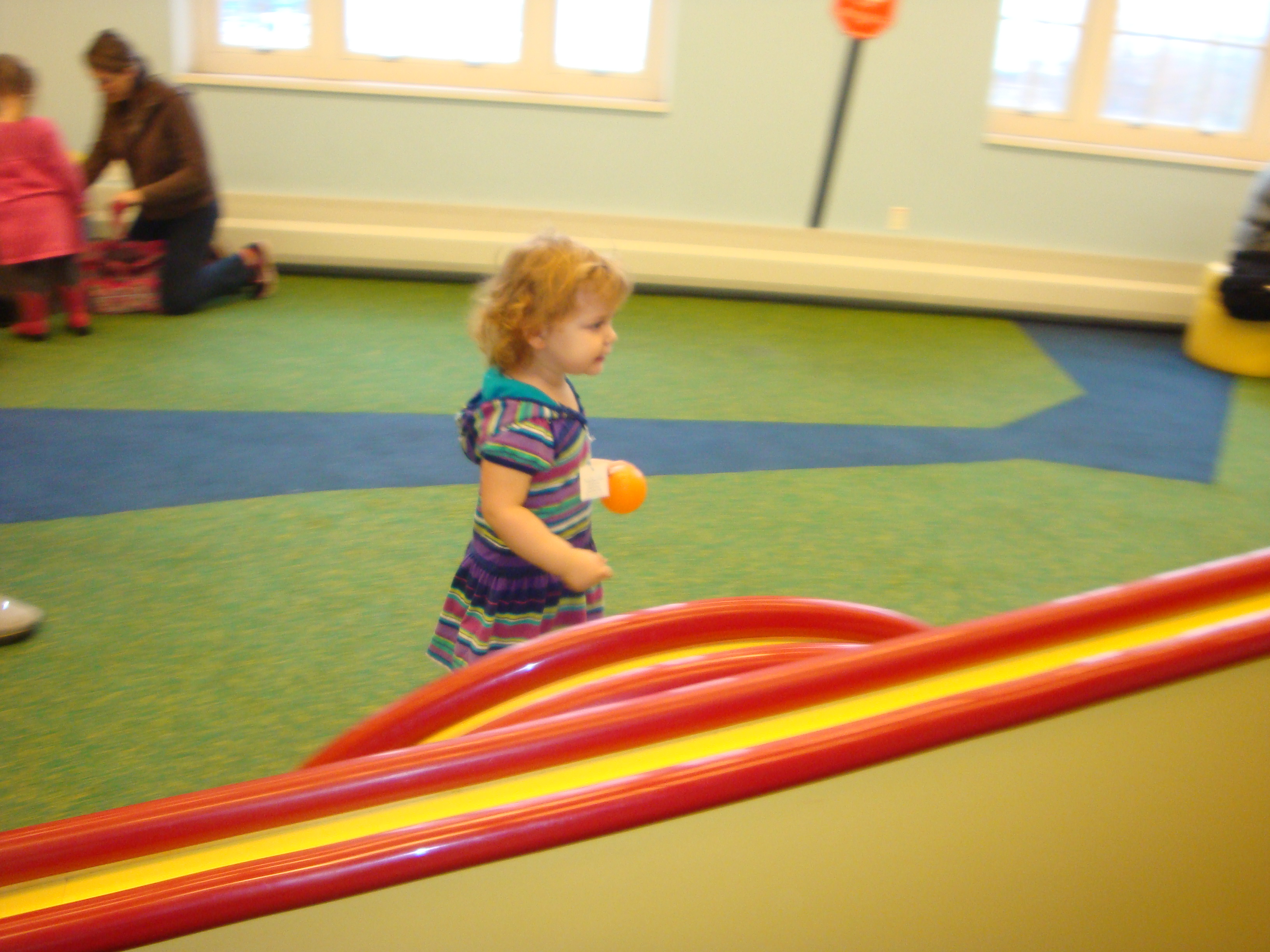 After a good 30 minutes I got her to look at other stuff, she liked this ball race but once a little guy tried to play with her she took off!