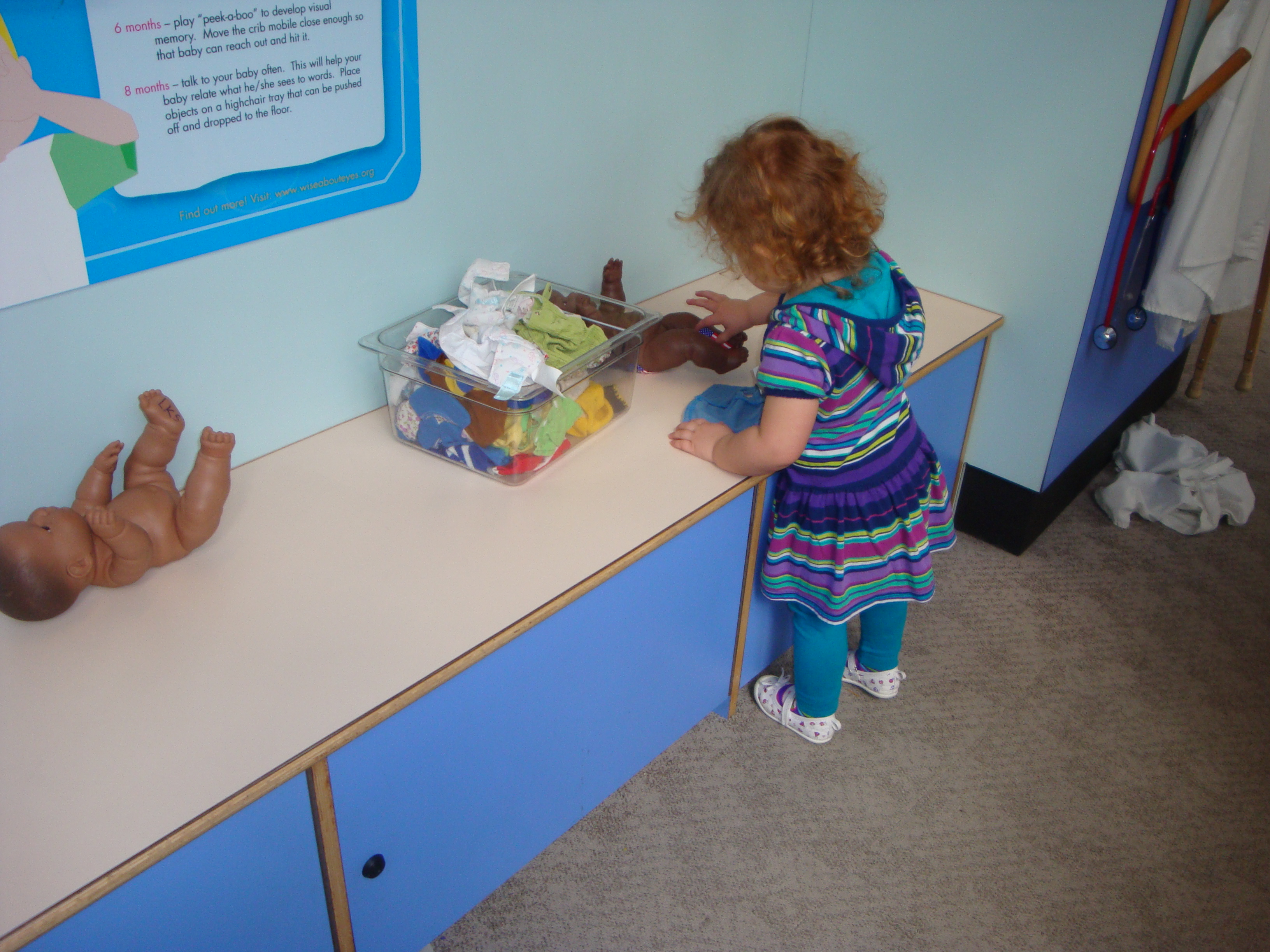 So we went over to the other side of the floor the medical heath part, she put a band aid on a baby doll….