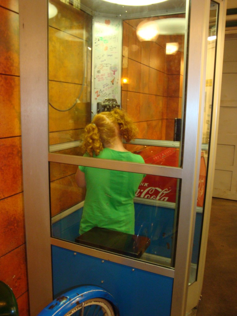 Pyper loved the phone booth, I used to go up the street from out house all the time to call boys on a payphone and here my little one had no clue what it was she didn’t even know what the cord was for…..I am getting SO old!