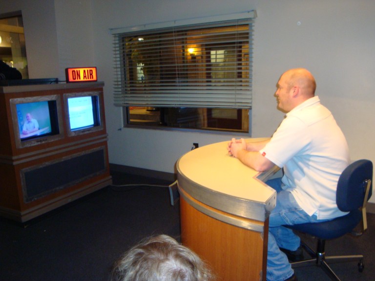 Pyper was the camera man Phoebe, Xander and Zach were the crew Phoebe was a little freaked out by the tv so she never went behind the desk