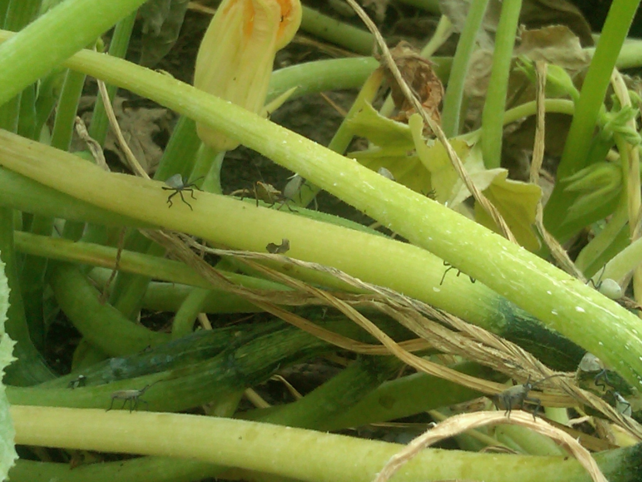Stink bugs will destroy your garden from what I read and what I saw they will get to the bottom of the stalks and keep the new squash from getting nutrients.