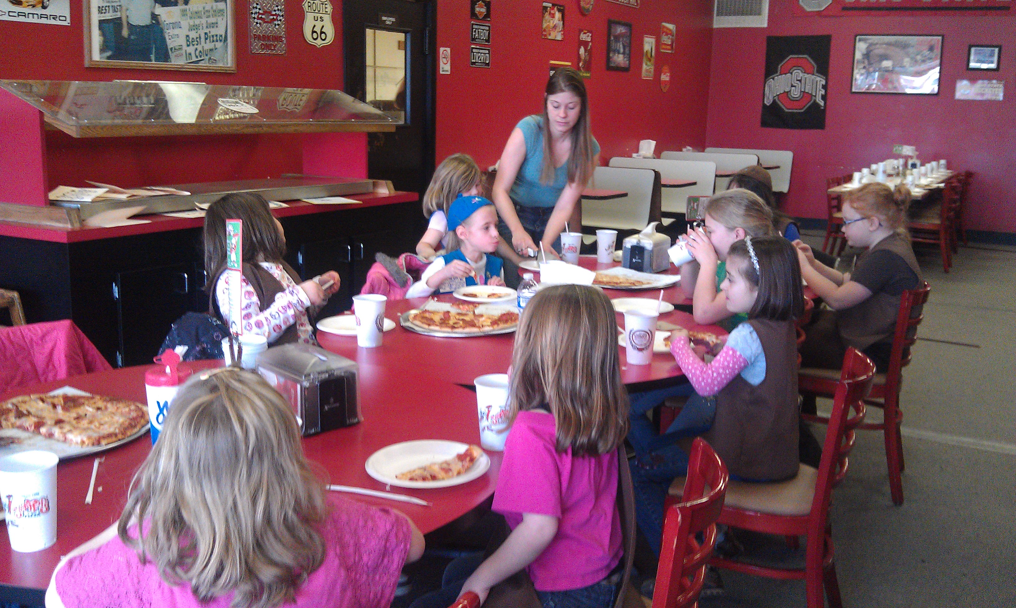 The girls were actually pretty excited to have the meeting at a pizza shop because everyone knows if you go to a pizza shop there is going to be pizza!