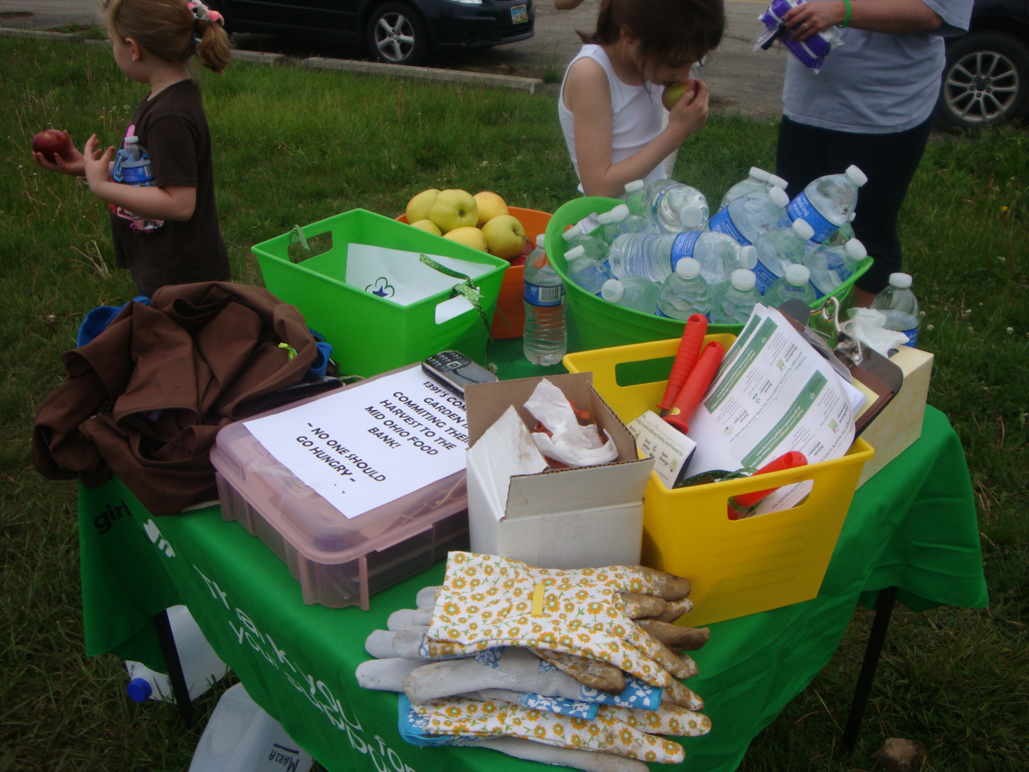 Snack time I made sure we had apples and plenty of water. I handed out garden journals for the girls to keep track of the garden and to be handed in later. I gave plenty of info aboput the garden and food bank not to mention a schedule to follow for weeding and watering.
