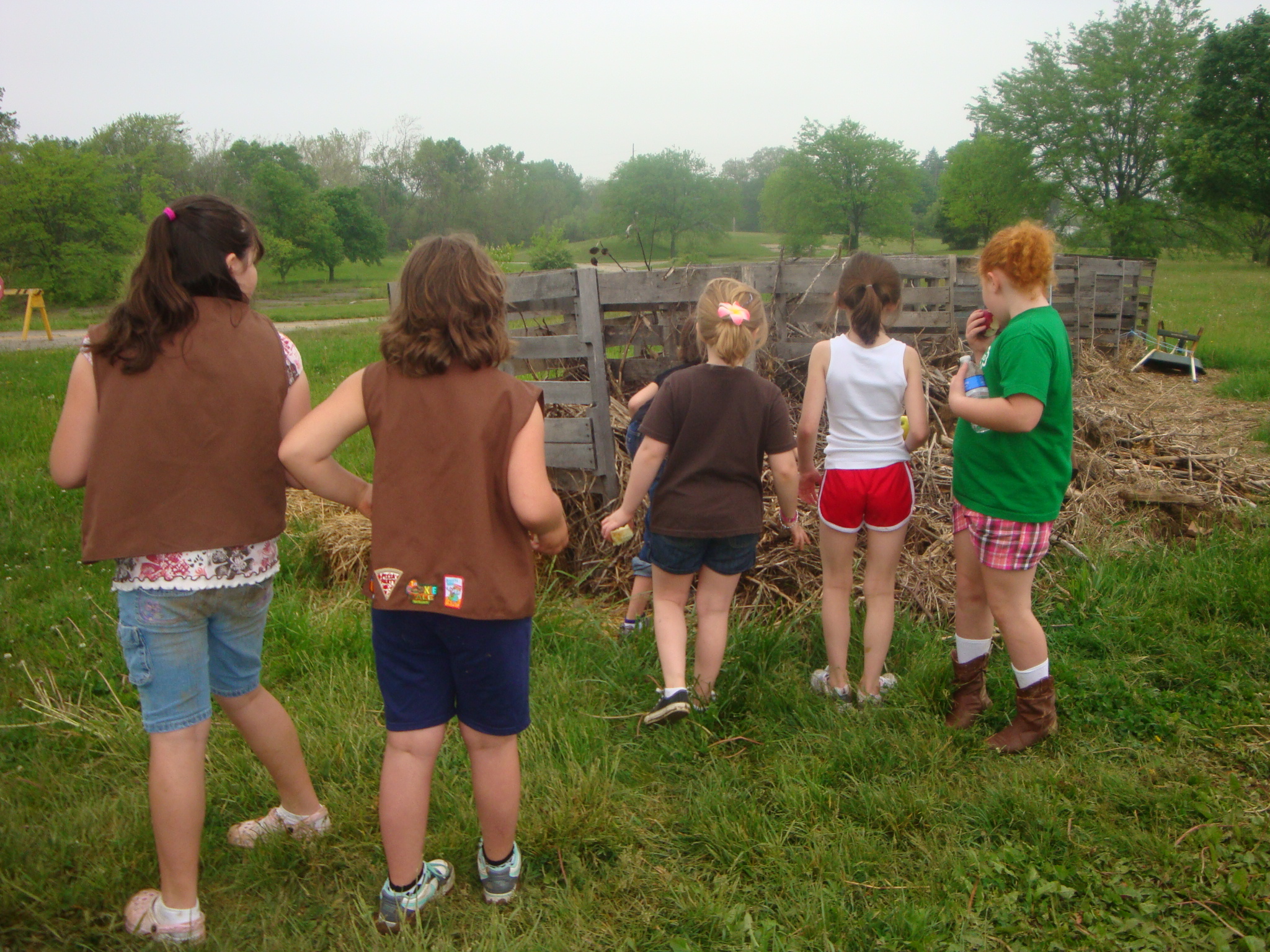 Abby told the girls all about the compost pile when they were looking foe a trash can. Nope she said throw them in the pile!