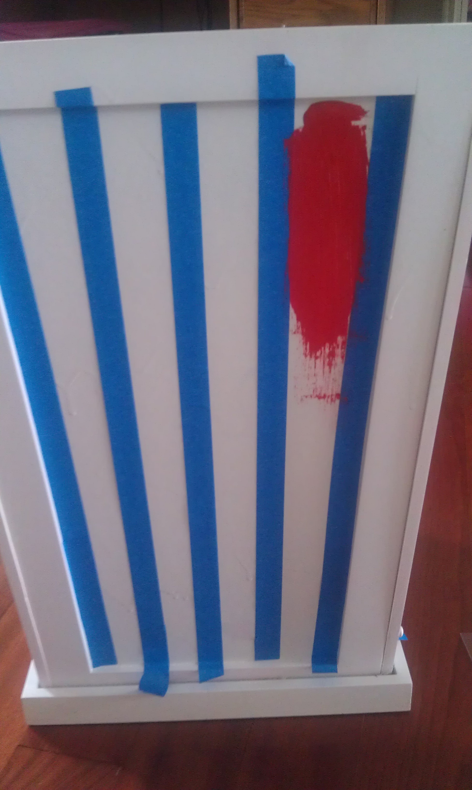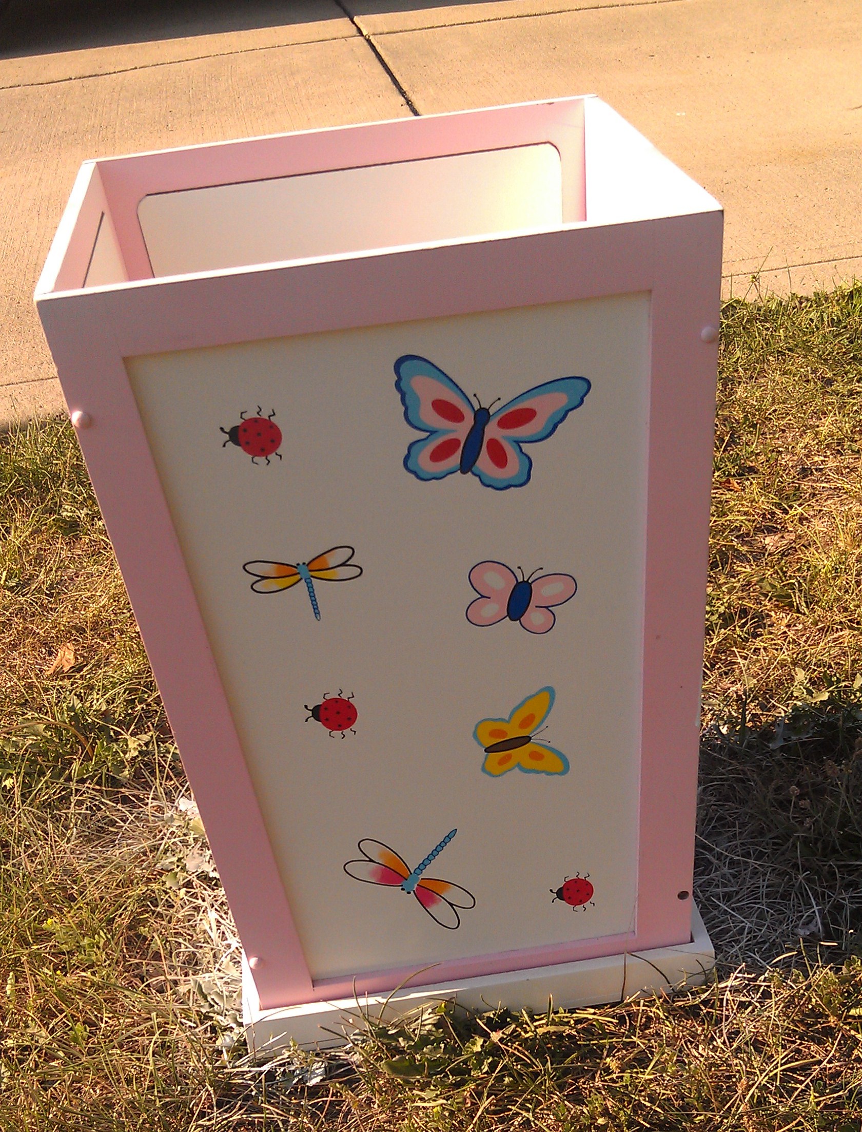 The next piece to paint was a clothes hamper, one night when I was watching tv with the girls I kept staring at this thing thinking what can I turn it into….