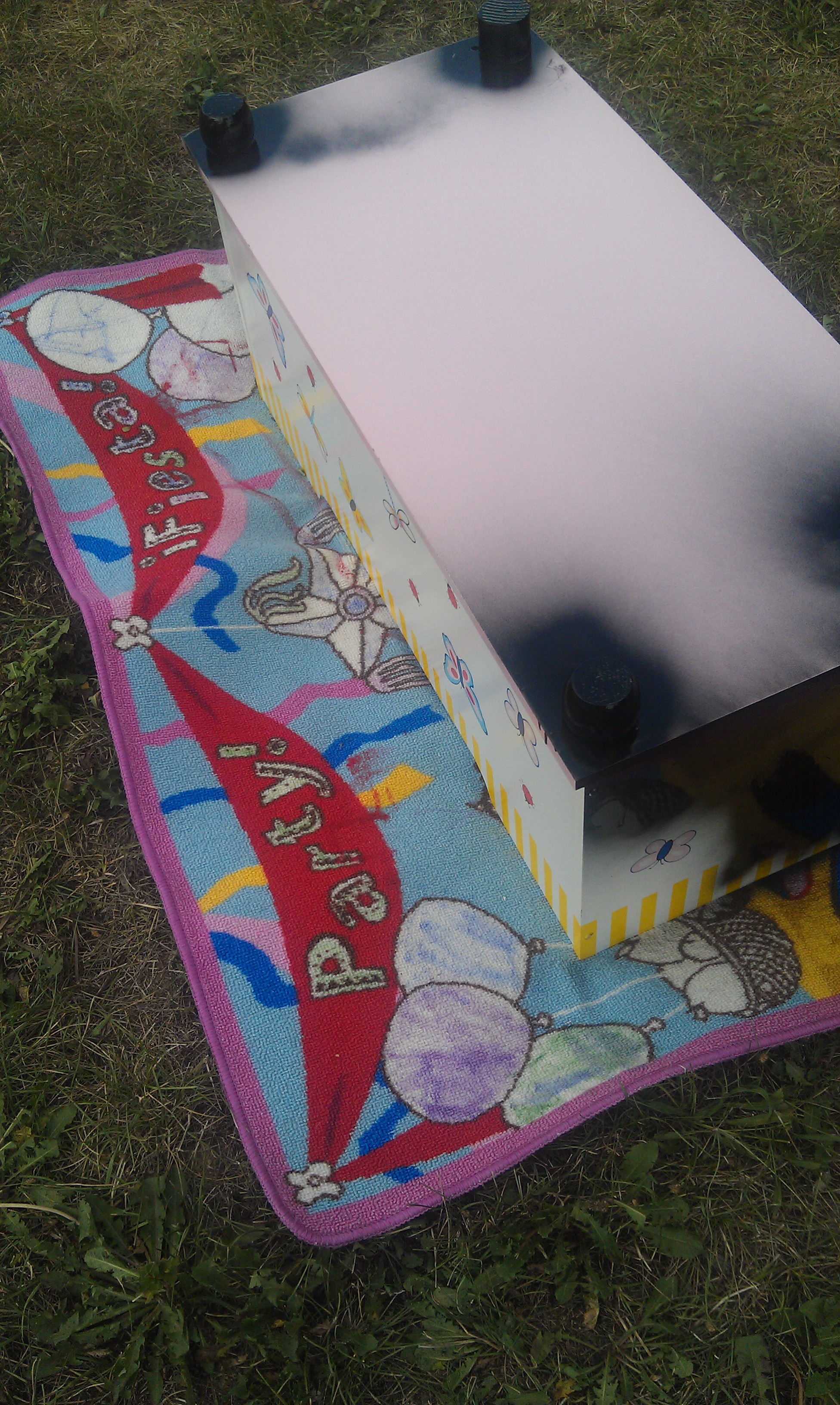 then my favorite part painting the front lawn, I mean painting the furniture (-: