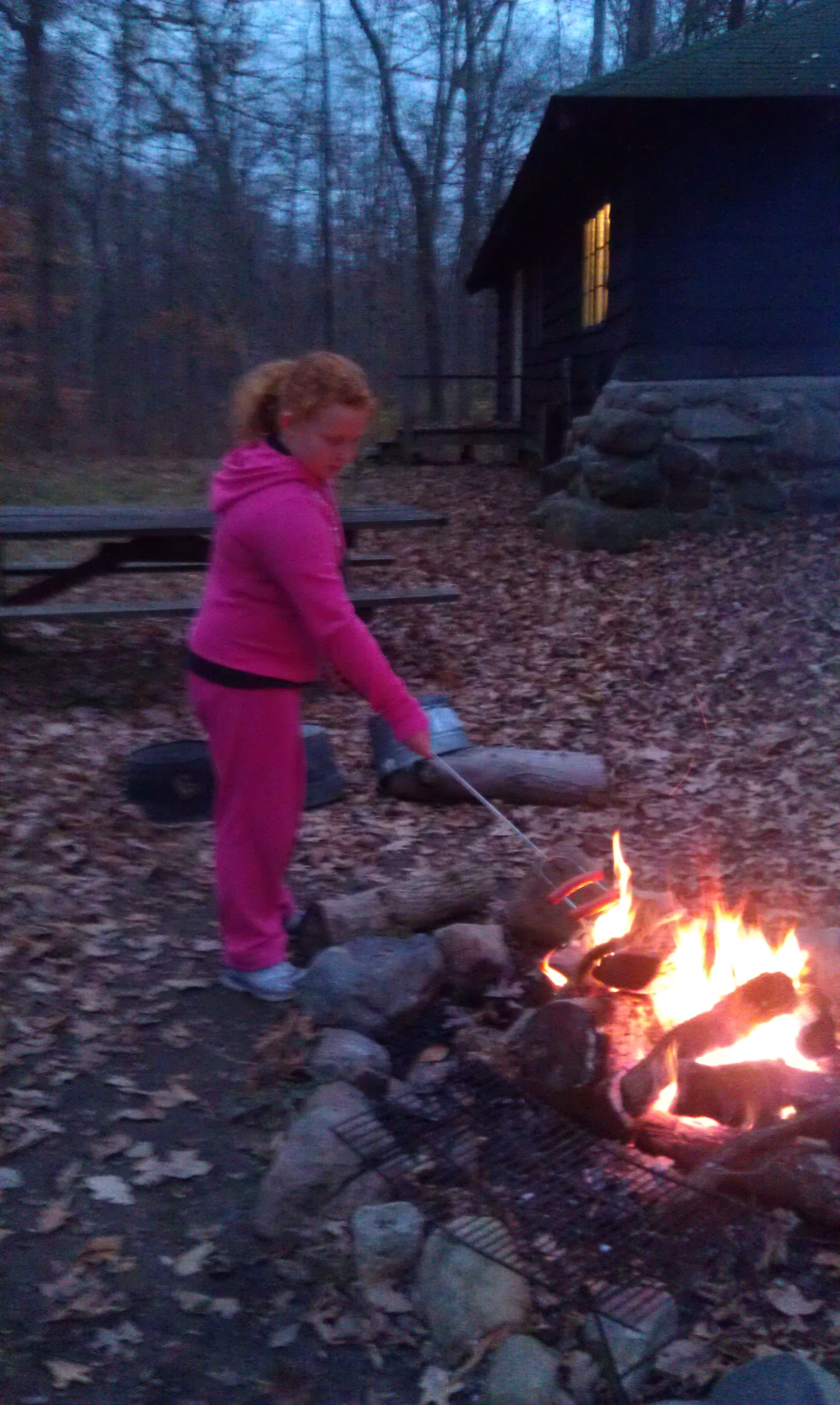 I got there first since we really didn’t have a whole lot of time I wanted to start the fire and be ready to make hot dogs when they all got there.  We went over the rules at our meetings, a few girls forgot as soon as they got there.  No Running at Camp! (those would be the girls in pink who are MY daughters so proud LOL).  Once a gentle reminder was given they remembered and there was no running at camp (-:
