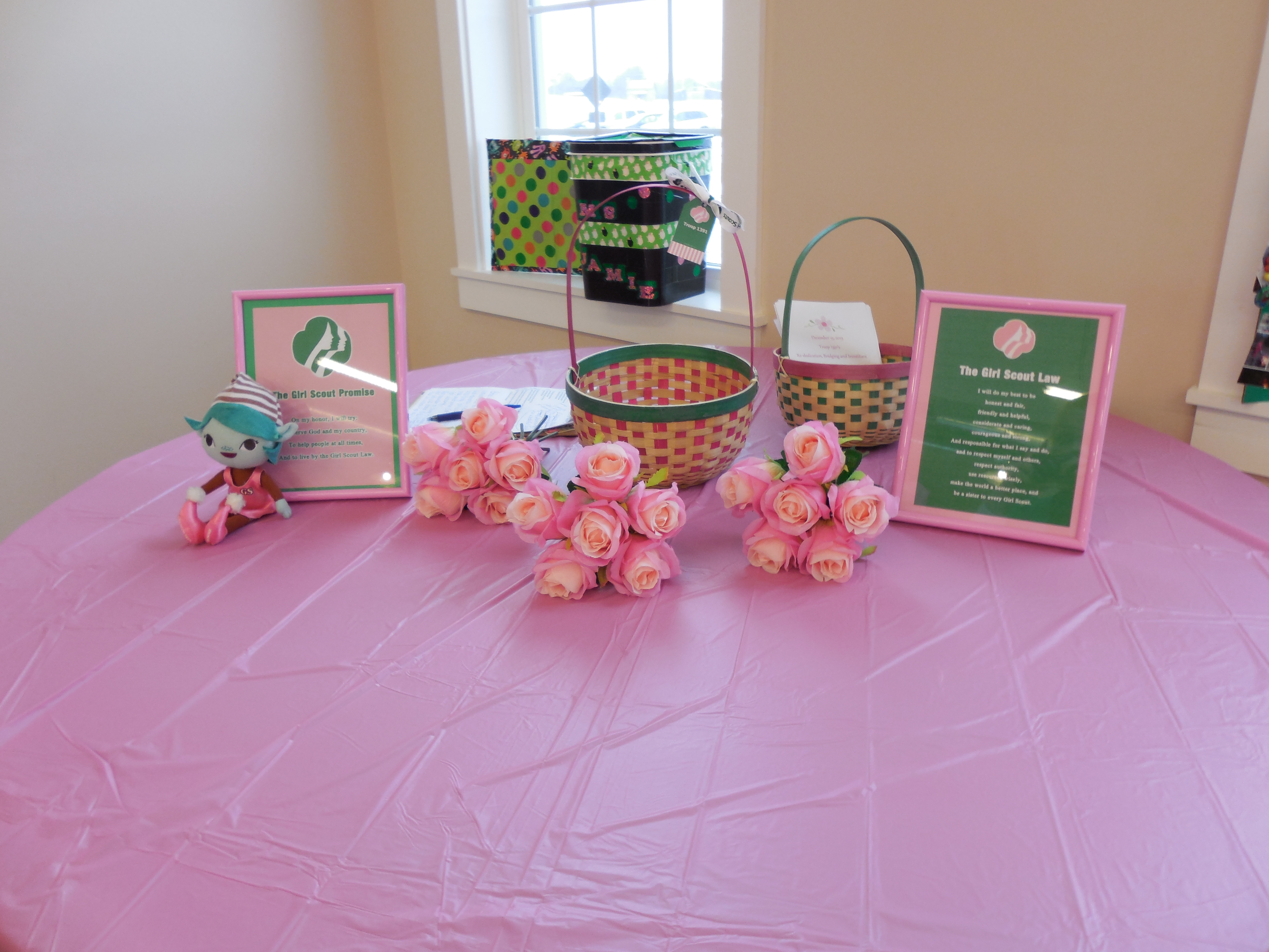 If you are a regular reader of my blog you know just how disappointed I was with the program part of our ceremony last year, therefore this year I was on a mission.  I searched Pinterest for ideas and saw the color scheme My Co-Leader and I love! Then the hard part LOL  I sat and thought about everything….Our Troop has three levels and we have new girls I saw nothing that appealed to us in a traditional ceremony.  Therefore, we had a Scout’s own or Leader’s own either way you look at it, it embodied everything our Troop is.