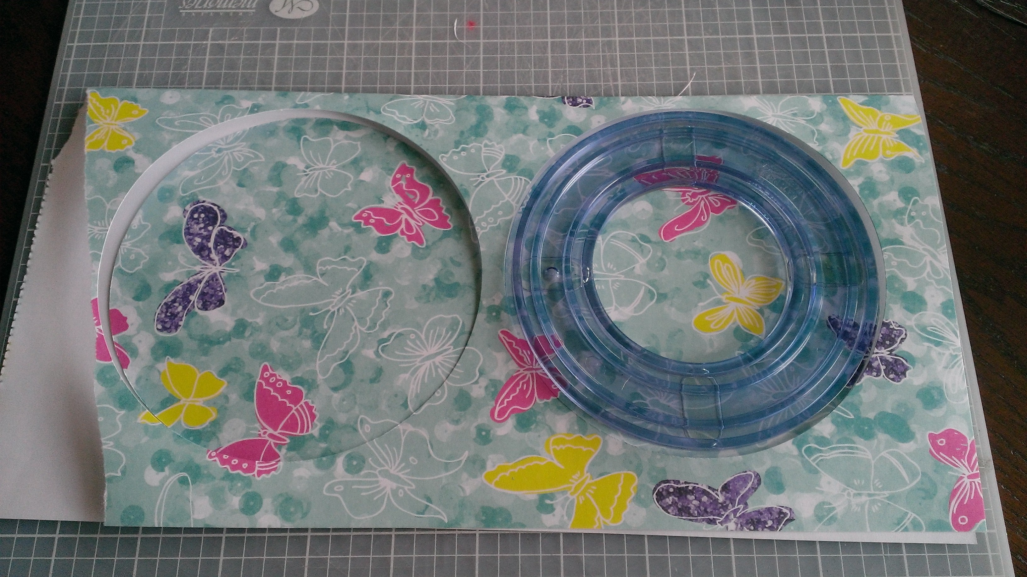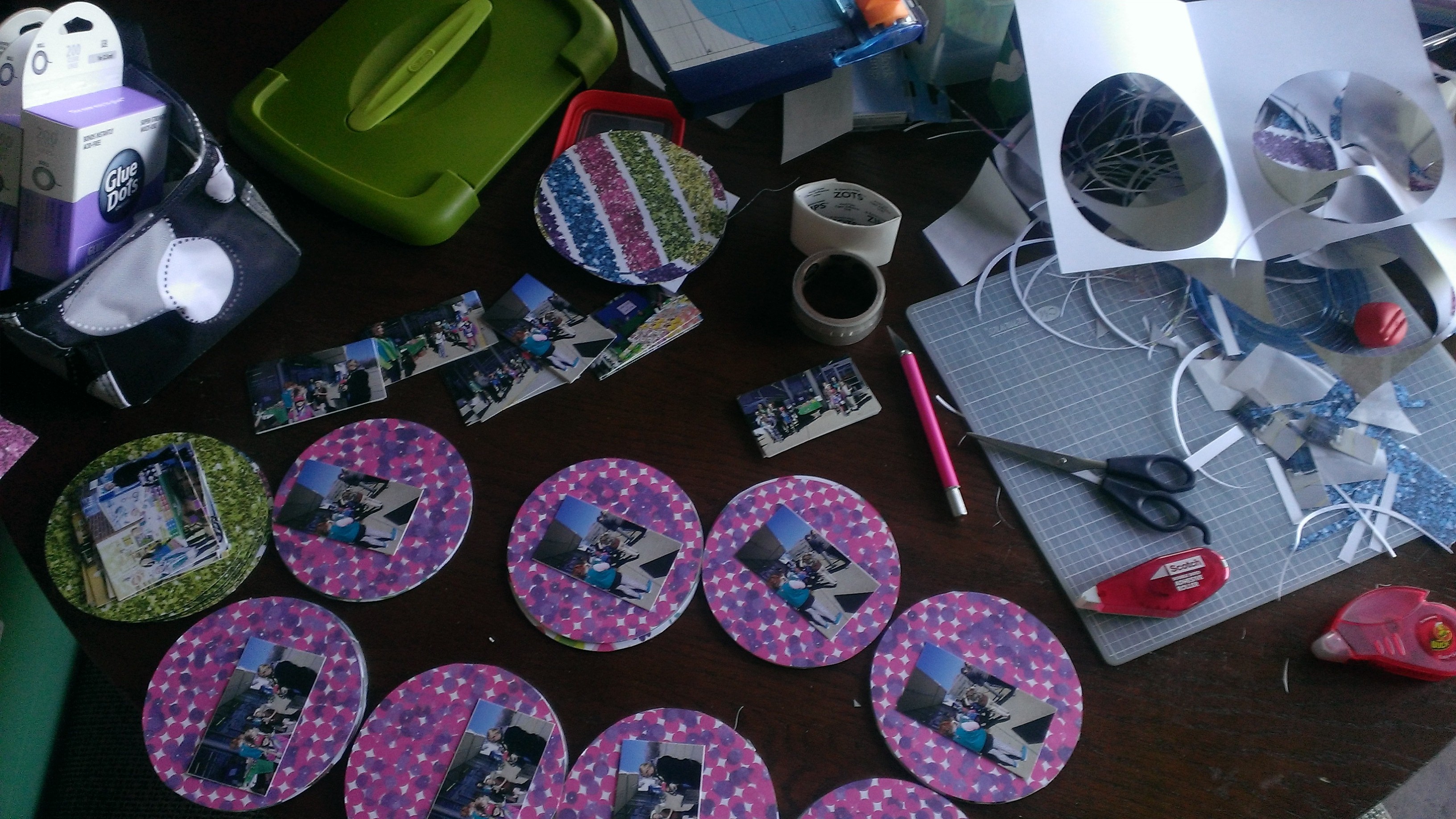 I used my Creative Memories Circle cutters for the paper to cover the CDs, you can easily use your exacto knife too cut around the CD after you attached the scrap paper.