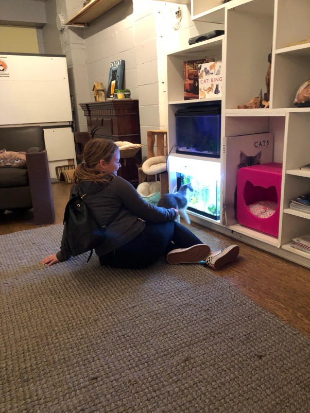 Before we hit our new status of stay at home the peas and I were lucky enough to hang out with some friends and go to a few amazing local places. One place that the peas had been begging to go to was our local cat cafe Eat, Purr, Love.