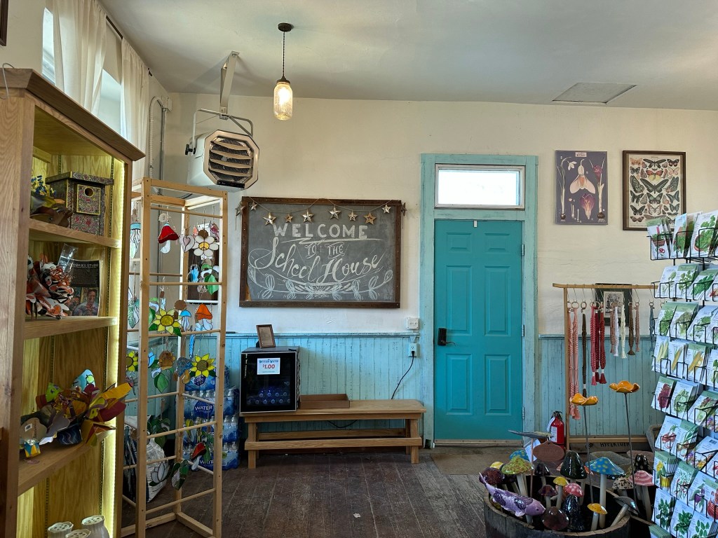 From where we live it took just under an hour to get there, and it was such a beautiful day. When we arrived there was overflow parking across the street so we just parked there. When you walk up to the ranch you have no idea how big this place is you first see the old school house that they have a small shop in now.